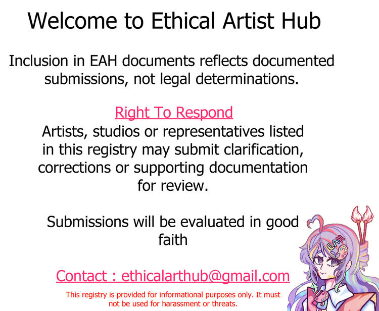 This account exists to document and discuss reported concerns within the art community, including unethical practices such as underpayment, AI misuse, tracing, misrepresentation and child-labor.